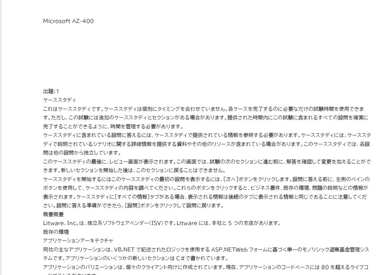 AZ-400 MCP Designing and Implementing Microsoft DevOps Solutions 問題集 247問 PDFファイル
